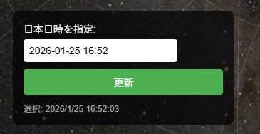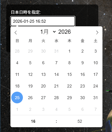 この状態で、マウス又はスワイプ操作で天体状況を閲覧可能です。